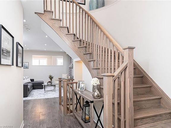 Gorgeous energy star home backing onto greenspace! Located just on the outside of all the hustle and bustle, where you have amazing access to Burlington and Oakville. Along with parking for 4 vehicles, composite deck, stone patio and gas line for your BBQ. Flooded with natural light that dances on the neutral palette of this upgraded home. The gourmet kitchen with plenty of luxury upgrades including walk-in pantry, stainless steel appliances, waterfall island and more! The open floor plan with 9ft smooth ceilings, engineered hardwood and upgraded lighting/pot lights also has a private and desirable office space. Take the hardwood stairs to the second floor where you will find a convenient laundry room with walk-in linen closet. Easily your new favourite spot - the true master suite has his & hers walk-in closets (custom organizers) and beautiful 5pc ensuite (quartz counter). The additional 3 bedrooms are big enough for play, study and sleep. Love what you see? Make this your home sweet home!