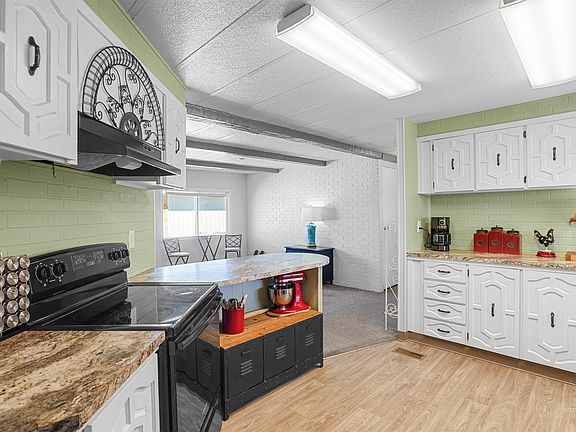 Welcome to this beautifully updated 3-bedroom, 2-bathroom home located in a well-maintained 55+ community. Offering 1,536 sq. ft. of comfortable living space, this home features generously sized rooms and several updates throughout, creating a warm and inviting atmosphere. Step outside to enjoy the large covered patio, perfect for relaxing or entertaining, surrounded by beautiful landscaping and complemented by a charming red storage shed. The 2-car carport provides convenient covered parking. Situated in a peaceful community, the $400/month lot rent includes lot rent and lawn care, allowing for low-maintenance living in a friendly neighborhood setting. This home combines comfort, space, and value—ready for you to move in and enjoy!
