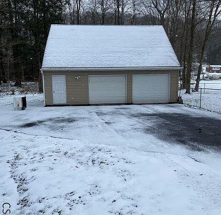 Beautifully maintained 3 bedroom with 2 full baths 32 x 60 doublewide manufactured home on foundation and retired title. This property has a brand new kitchen, gorgeous glass sunroom addition with pellet stove where you can sit in quiet solitude and watch the snow fall while staying toasty warm. Fenced yard. Large 2 car detached garage with walk up to large storage area. Wood burning fireplace in living room. Heat pump forced air system. Master bedroom with master bath and large closets. All this on 4+ acres.