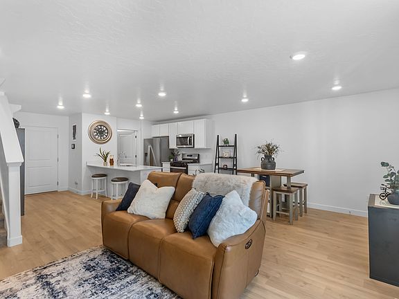 Impeccably clean, stylish 3 bd, 2 bath townhome in Spanish Fork's desirable, Quiet Valley Community. Built in 2024, this home shows like brand new! Enjoy open concept living, including a gorgeous modern kitchen with a gas range and walk-in pantry! Large Primary Suite includes walk-in closet and ensuite bathroom. This home boasts GORGEOUS mountain views from bedroom windows and includes bedroom level laundry! This community has it all, from a beach-entry pool, pickleball courts (literally a one-minute walk!), pump track to playgrounds and walking trails. If convenience is important, this home is for you! It is centrally located near restaurants, Walmart, a movie theater, shopping and less than 10 minutes from I-15. Storage can be an issue in some townhomes; however, this home is very different! It includes an 8' high crawl space and an attached two car garage! You have to see it to believe it!!!! Measurements provided as a courtesy only, buyer to verify all info.