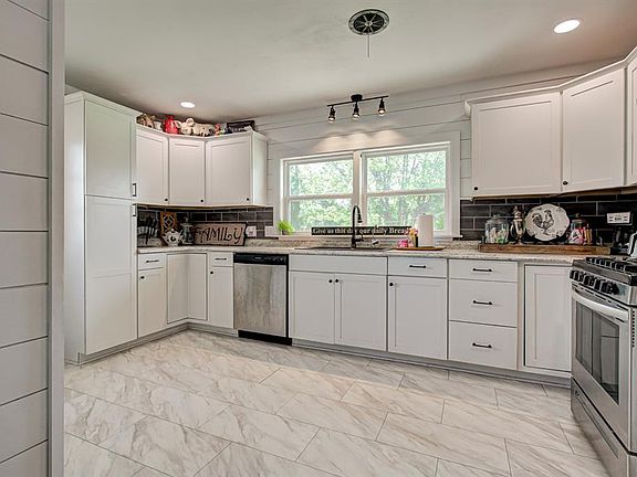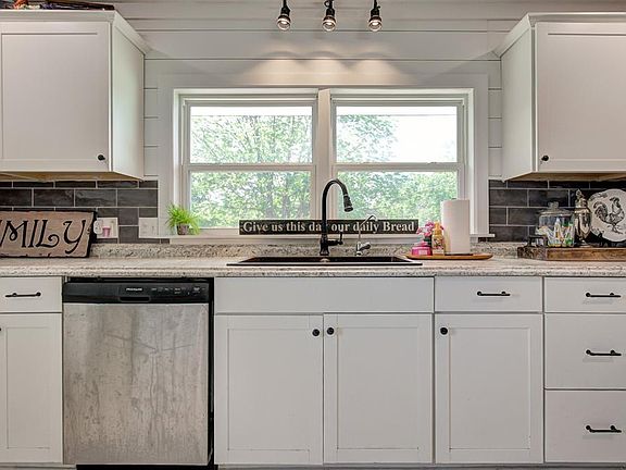 The newly updated bathroom exudes modern farmhouse character with shiplap walls, patterned tile flooring, a dark wood vanity, and stylish fixtures. Each of the three bedrooms offers comfortable, functional space ideal for family living, guests, or a home office.
