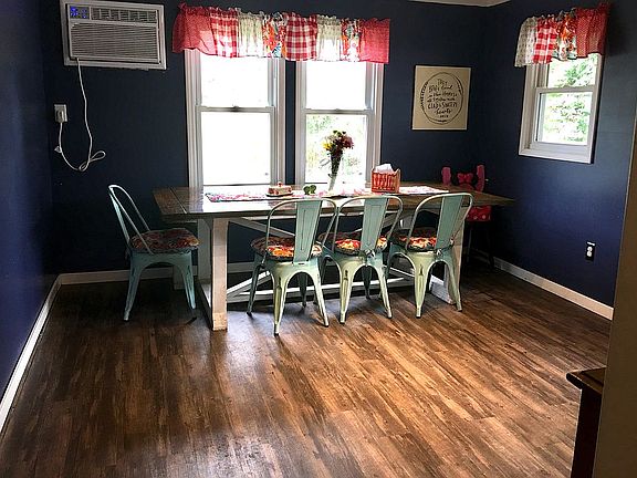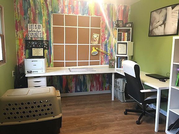 Modest 3 bed, 1 bath home in a quiet neighborhood. Huge knotty pine kitchen with tons of cabinets professionally painted by Country Cottage in 2018 and new stainless appliances in 2019, formal dining room, and large pantry with adjustable shelving. The farmhouse table and bench can even be negotiated into sale if buyer desires! Home office/bonus room could be used as a fourth bedroom or playroom for children or grandchildren and has a wall custom painted by local artist. Hardwood and laminate flooring throughout. Attached back deck, large backyard with many fruit trees. HUGE storage building. Covered front porch with attached carport and two covered parking spaces. New roof in 2015, new heating and air in 2018, new main water line in 2019, bathroom remodel in 2021.