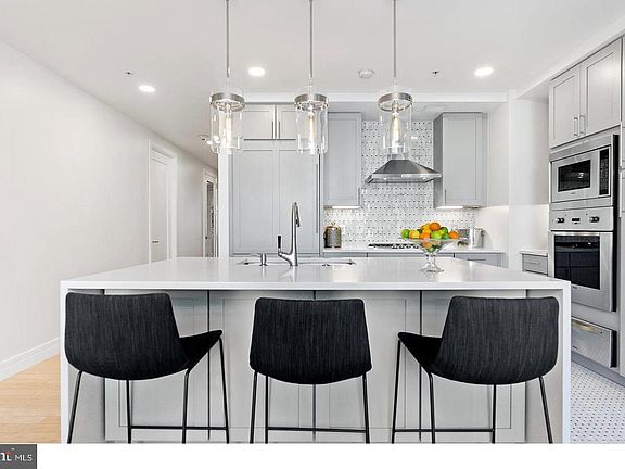 Enjoy five-star living in this exquisitely renovated 2-bedroom, 2.5-bath corner residence at The Ritz-Carlton Residences, offering the most desirable floor plan with sweeping views of Dilworth Plaza and City Hall. This exceptional unit includes one-car garage parking and showcases timeless elegance with refinished Brazilian cherry hardwood floors, motorized window treatments, smart lighting controls, and designer fixtures throughout. The entryway welcomes you with a gallery-style hall perfect for displaying artwork, leading into the expansive living and dining areas, which are framed by floor-to-ceiling windows that bathe the space in natural light and highlight the dramatic cityscape beyond. The renovated gourmet kitchen is a chef’s dream, featuring a waterfall-edge quartz island, marble flooring and backsplash, Sub-Zero refrigerator, Viking range and microwave, Miele dishwasher, U-Line wine cooler, and a Franke undermount sink. The spacious primary suite offers two custom closets and stunning skyline views, while the luxurious en-suite bath boasts Calacatta marble floors and counters, dual vanities, a Bain ultra-soaking tub, Duravit commode, and a frameless glass steam shower. The guest suite includes its own custom closet and a stylish bath with Calacatta Gold marble, pedestal sink, and frameless shower door. A marble-appointed powder room completes the home’s refined layout. Living at The Ritz-Carlton Residences means enjoying an unmatched level of service and amenities, including a 24-hour concierge and doorman, chauffeur-driven Mercedes and covered resident access to the Ritz-Carlton Hotel, where you can enjoy in-room dining and discounted rates at luxury Marriott properties worldwide. The building’s recently reimagined common spaces include a 7,000-square-foot state-of-the-art fitness center with an indoor lap pool, hot tub, and yoga/Pilates room; a newly updated residents’ lounge with a balcony, caterer’s kitchen, and media room; and a serene private outdoor park with a waterfall and gated dog area. Additional services such as pet walking, babysitting, dry cleaning, and storage units are available for an additional fee. Perfectly situated in the Rittenhouse Square and Avenue of the Arts neighborhood, this unparalleled home places you steps from Philadelphia’s finest dining, shopping, arts, culture, hospitals, and public transportation. Experience elevated urban living in a residence that reflects the world-class luxury and legendary service of The Ritz-Carlton.
