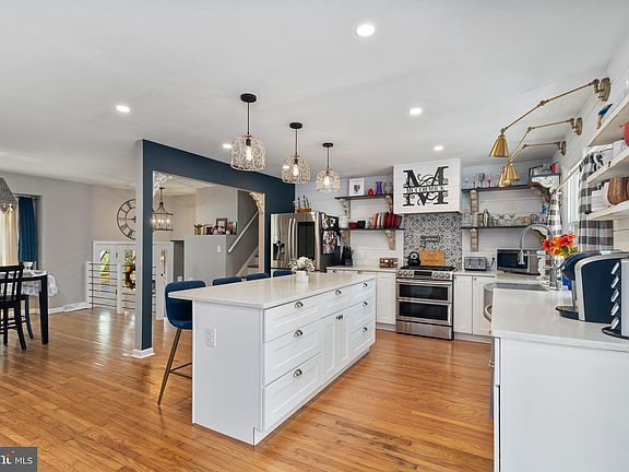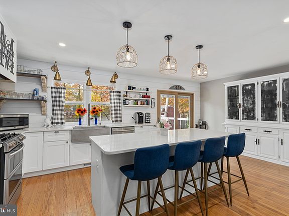 Open and Bright! Welcome to this stylish 4-bedroom, 2.5-bath modern split-level home. As you arrive, you’ll notice the 8+ car stone horseshoe driveway with an additional area designed for a camper or RV, complete with sewer, water, and electric hookups. There’s even potential space for a 1–2 car detached garage. The paid-off solar panels are included, keeping your electric bills exceptionally low. Inside, a welcoming foyer leads you to the gorgeous open-concept kitchen and dining area featuring Corian countertops, a huge island with bar seating, open shelving, stainless steel appliances, and recessed lighting. A sliding door opens to the backyard and a newer low-maintenance deck with modern railings and spindles. The lower level offers a warm, inviting living area with hardwood floors, a shiplap accent wall, and a wall-mounted electric fireplace. Off the living area, you’ll find a bedroom with a full bath boasting a large tiled shower for two, double vanity, and direct access via slider to the paver patio. Throughout the home, farmhouse-style barn doors add charm and a cozy touch to each bedroom. The finished basement provides extra space for a family room, home office, or storage. Step outside to a well-manicured, fully fenced backyard—perfect for entertaining guests or relaxing with family. The yard features two storage sheds, a small chicken coop, and an inviting paver patio complete with outdoor furniture. A whole-house generator is also included for your peace of mind. Schedule your showing today—this stunning home won’t last long!