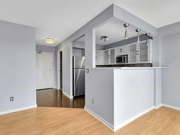 Stunning unobstructed south-facing viewsLarge windowsOpen-concept layoutSleek laminate flooringModern kitchenWhite cabinetryWood countertops