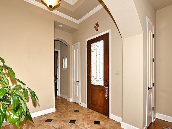 LUXURIOUS ITALIAN VILLA | GATED | SINGLE STORY | 3 BEDROOMS | 2 BATHS Gorgeous stucco villa tucked away in a small 24-home gated community just west of Blanco with charming cobblestone streets and lush landscape. 3 spacious bedrooms with 3 full bathrooms. Gourmet granite kitchen with granite countertops, stainless steel appliances: built-in oven & microwave, gas cook top, refrigerator included, 42" custom cabinetry, Breakfast bar. High ceilings. No carpets: hardwood & ceramic tile floors; Cover patio with extended flagstone patio. Very little landscape maintenance in patio. Excellent floor plan with all 3 bedrooms having great privacy. HOA maintains front common lawn care/landscaping. Conveniently located near 281, 1604, 410, airport, shopping and entertainment. Please verify all measurements and school information. See in additional documents the LENDER-PAID 2-1 Buydown (buyer needs to qualify)