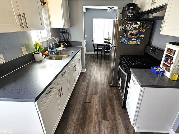 Nicely remodeled 2 bedroom 1 bath home in a Rancho Brea close to freeways and schools. The kitchen has been remodeled with new cabinets, stainless steel sink, granite counter tops and close by is a cozy dining area with storage for all your dishes. The primary bedroom has lots of space and has a large walk in closet. The bathroom has been remodeled with a granite counter top, a new cabinet and designer tile in the tub/shower area. The central air is about 4 years old and all the flooring is laminate. The outside of the home is low maintenance and features a covered patio and large back yard with an Orange/Lemon tree and a shed. You will have access to a large community room with a kitchen along with a pool and spa.
