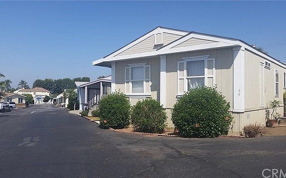 Act Fast! Located in a sought after family mobile home community. CORNER LOT into a quaint CUL-DE-SAC. This home is nicely arranged with a large master (with on-suite bath and walk-in closet) on one side and 2 bedrooms and 2nd bathroom on the other. The kitchen opens to a nice size dining area and large family room with vaulted ceiling and fireplace. Exterior features 3 parking spaces (2 covered) and spacious storage shed. House does not have upgrades, just newer carpet. A little attention is needed to spruce it up, but is otherwise clean and functional. Don't wait on this amazing opportunity to live affordably in Brea, CA.