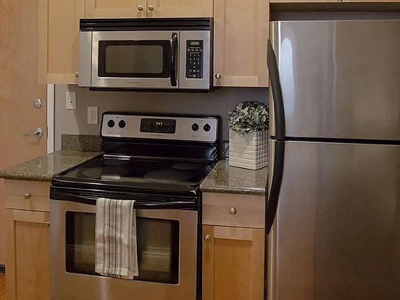Private balconyGranite countertopsRefinished hardwood floorsNew refrigeratorLarge windowsGalley kitchenStainless steel appliances