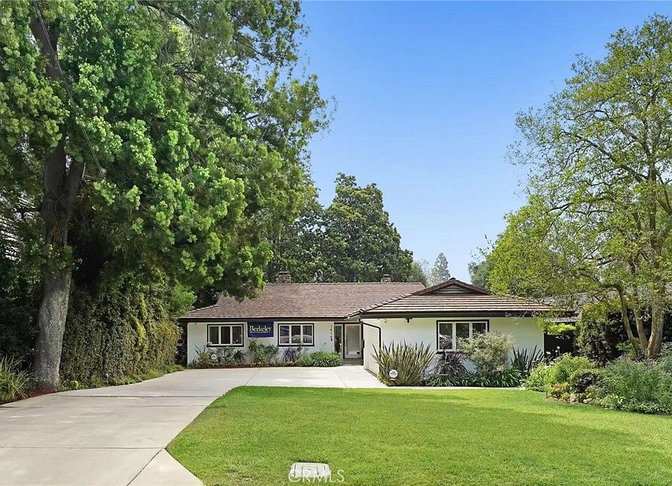 This refined mid-century home, built in 1963 and spanning approximately 2,760 sq ft, blends classic charm with modern luxury and carries a unique legacy—the original owner was from the iconic Helms Bakery, a name still fondly remembered in the community. Set behind a beautifully landscaped front yard, the home features elegant double-pane French doors that fill the interior with natural light. The foyer opens to a formal living room with a striking Ann Sacks-tiled fireplace and rich mahogany floors, seamlessly connecting to a formal dining room and a spacious family room adorned with a Walker Zanger-tiled fireplace. The thoughtfully designed layout includes four generously sized bedrooms and four stylishly remodeled bathrooms with high-end designer finishes. The bright, gourmet eat-in kitchen boasts Caesarstone countertops, modern pendant lighting, and flows into an updated laundry room and a two-car garage. Throughout the home, multiple French doors lead to a covered entertainer’s patio with skylights, overlooking a lushly landscaped 0.30-acre lot. The garden was designed to offer year-round blooms, with sweet osmanthus near the primary bedroom and patio area filling the air with its signature fragrance. A variety of fruit trees—including feijoa (pineapple guava), orange, tangerine, lemon, fig, and guava—enhance the setting with seasonal color and fresh harvests. Ideally located near award-winning schools and just moments from San Marino’s boutiques, grocery stores like Ralphs, Bristol Farms, and Whole Foods, as well as In-N-Out and fine dining, this home offers an exceptional blend of history, comfort, and timeless appeal.