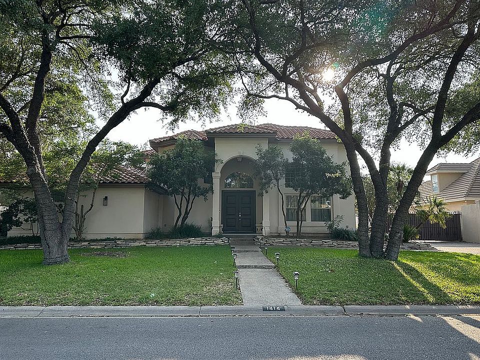Beautiful and renovated two-story home in the Plantation neighborhood one mile from Laredo Country Club with easy access to shopping and restaurants on Del Mar Blvd and McPherson Rd. This home was extensively remodeled in 2021. The two-story foyer and living room have a towering natural fireplace and light. The first-floor master bedroom has a large bathroom, walk-in closet and glass doors that open to the outside pool area. Alongside the kitchen is a small bedroom and full bath, perfect for live-in help. A guest bathroom is available on the first floor as well. Upstairs, three bedrooms share a large full bath with two sinks and a walk-in shower and are perfect for children or guests. Outside is an entertainer’s paradise with a large pool, covered patio, metal palapa with grill, sink, refrigerator and space for a mounted TV. An outdoor half bath means guests do not have to use the indoor bathroom. Solar panels on the palapa and house so you don’t have to worry about the electricity bill. On the backside of the house there is a putting green, basketball court and storage shed. The garage has been enclosed and converted into a game room and bar area, and there is ample parking space in the back of the house. This is a truly special home with many unique features in Laredo’s premier neighborhood. Come see it today!