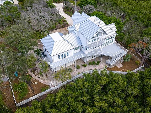 With its unparalleled blend of sophistication and natural serenity, this exquisite residence offers a tranquil setting, abundance of privacy, and notable space appreciated for those with varied interest. The interior is defined by meticulous attention to detail and a sense of timeless, refined luxury. Elevated construction with living areas on the second and third levels are easily accessed by either stairs or elevator. The entry through double etched glass doors to the main living level is impressive with its vaulted ceilings, soft lighting and detailed rich planked wood ceilings. A spectacular kitchen with large center island, top of the line appliances such as a 6 burner gas stove is certain to impress the most selective chef. Family and guests will enjoy the two sided fireplace during casual meals or grand-scale entertaining in the inviting dining room. Three additional bedrooms, one currently used as an office, provide a floor plan that is functional. The entire third level is comprised of the opulent primary suite featuring a lavish bath area with exquisite finishes- soaking tub, walk in shower with multiple heads, mirrors with touch activated lighting and temperature control; the area exudes refined luxury. Be delighted by the sensational sunsets from your expansive private terraces. Ground level flex area of approximately 580 sq. ft., not included in the heated square footage, provides additional space for exercise, hobbies, or recreational activities and is equipped with a spacious bar and full bath. Additionally, the property offers an oversized air conditioned 4 car garage, separate work shop, storage and hard wired hook up for whole house generator. Opportunity for short term rental income as well with its proximity to the beaches: Car enthusiasts will take note of all of the space! New items include; roof, baths, flooring, HVAC systems, landscaping and much more. Appreciate the private side yard for gardening, play area, or various outdoor activities- Seller has acquired a plan for those who consider an addition of a pool and can be shared. This is a property with a multitude of possibilities for those with varied interest. The striking architectural design blends seamlessly with the natural landscape and allows for a private retreat where luxury meets the beauty of nature! And yet, it is just minutes from beaches, shopping and access roads to neighboring Tampa and St Petersburg. Don’t miss this one-it is outstanding!