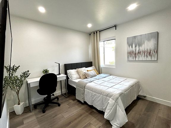 Fully furnished spacious downstairs bedroom in newly renovated 3 bedroom 2.5 bathroom condo in highly desirable Tustin neighborhood available for rent. Furnishings include a full sized bed and your own wall-mounted 48" TV. Motorized remote-controlled blinds installed. Move in ready. Your own private half bath, upstairs full bathroom w/ shower shared with only one other roommate. Street parking. Full privileges to the kitchen, living room, patio, and in-unit washer/dryer. Some utilities included in rent. No pets, no parties. Occasional overnight guests okay. Application to include fee for background and credit check after initial screening. Please e-mail or text a brief description of yourself. Month-to-month rent w/ a signed lease Some utilities included in rent. No pets, no parties. Occasional overnight guests okay. Application to include fee for background and credit check after initial screening. Please e-mail or text a brief description of yourself.