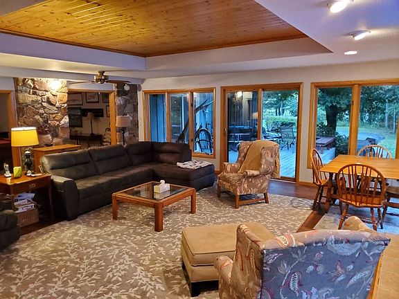 Seller is a licensed real estate agent in the State of Wisconsin. This one of a kind vacation home sits on 575 feet of water frontage on the Big Eau Pleine Flowage and a 1.67 acre lot. The property has water on two sides, allowing privacy and wonderful views. The home features a new kitchen, hardwood flooring throughout the main floor, 3 bedrooms, 2 full baths, a large family room and a great room with 13 windows facing the water and two fireplaces.The property also has a screened in porch, large fire pit and storage for your boat. And for your convenience a boat landing is located on the property, near a 30- foot dock which is included in the sale price. The property is a wonderful location for great outdoor adventures such as fishing, snowmobiling, boating, kayaking. Snowmobiles trails connect right outside of the property. When the current owners are not using the property, they have rented in out on VRBO and Air B&B, and have had a steady customer base. The property can also be used as an investment. Some of the best fishing hot spots on the Big Eau Pleine, are also located right near the property. The water frontage includes a wonderful sandy bottom and sandy beach. The large lot allows for a lot of privacy, and family and friends to play volleyball, horseshoes and other yard games. The property also features a large perennial garden with raspberry bushes. The home also features a new privately owned 1500 gallon LP tank and a Mound Septic System installed in 2010. The home has recently been repainted both interior and exterior and features a composite deck off the great room and a murphy bed in the sunroom for extra sleeping space. Electronic earnest money through TrustFunds is now available. TrustFunds will charge a $5 convenience fee to the buyer for the use of this service.