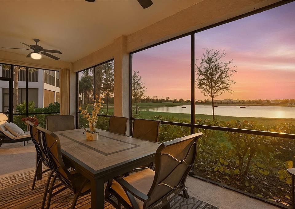 Lanai privacy shutterEpoxy-coated garage flooringStunning aqua-range viewsNew ultra-quiet dishwasherStylish kitchen backsplashAccent wallPlank tile lanai flooring