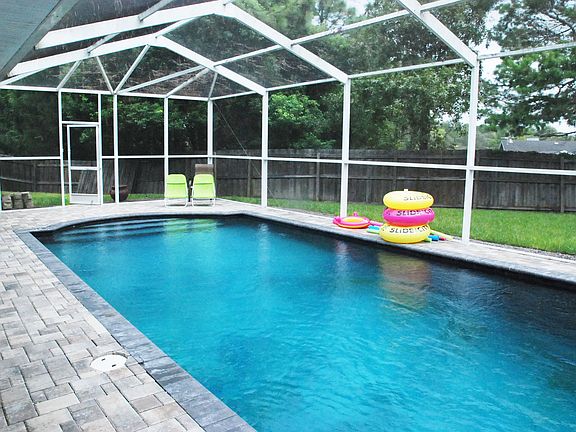 This beautiful four bedroom/two bath home with 3-car garage sits in a cul-de-sac in the welcoming neighborhood of The Oaks. This lovely home features trey ceilings, a formal dining room, kitchen sporting stainless steel appliances, granite countertops, and breakfast bar, breakfast nook and media room. French doors lead from the living room to the screened in salt water pool with pavers. Master bedroom w/large walk-in closet, full bathroom and dark room that can be used as wet bar or additional closet. This home as all the bells and whistles! Schedule your showing today! Repaired Sinkhole, documentation available upon request.