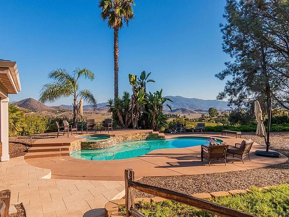 Discover your own slice of paradise in this remarkable property, where the allure of a serene countryside meets the elegance of modern living. Nestled on almost 4 sprawling acres, this home has a beautiful setting with its picturesque backdrop of a private vineyard and breathtaking views of the surrounding mountains. Upon entering the home, your eyes are drawn upward to the stunning vaulted ceilings adorned with rustic exposed beams. The heart of the living space is a charming brick fireplace, inviting you to cozy up on chilly evenings.