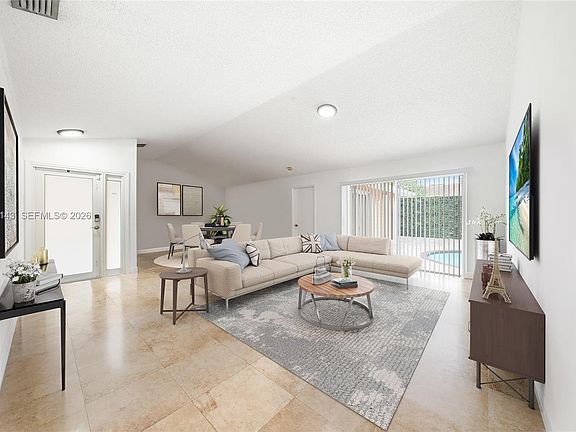 Spacious 4-bedroom, 2-bath home in the desirable Royal Glen community of Kendall, offering a bright, open floor plan and an updated main suite. Photos include virtual staging to help illustrate the home’s full potential. The home features impact windows and doors, a newer roof (2020), updated A/C system (2024), a contemporary kitchen with granite counters, and updated flooring. The backyard is designed for outdoor living and includes a refreshed pool area with pergola and fencing (2023). Located in a quiet neighborhood close to shopping, dining, parks, and major highways with a low monthly HOA. Check this out now!