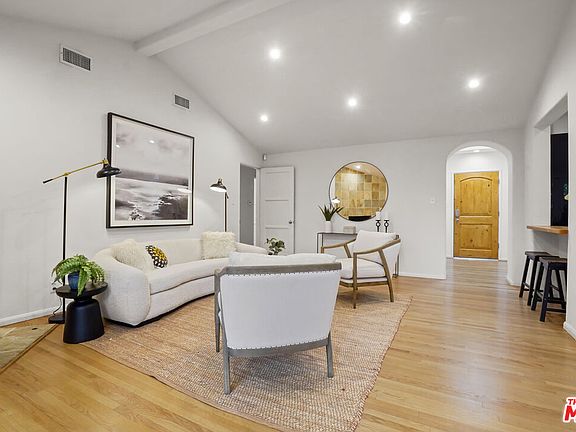 Welcome to your urban oasis! Originally designed and built by famed home builder W.M. Mellenthin, this exceptional Mid-Century Ranch has been thoughtfully expanded and updated with the design and amenities ideally suited for today's contemporary lifestyle. Sited on an idyllic, serene cul-de-sac and set privately behind gates, this Mid-Century California Ranch resides in divine harmony with its organic environment of towering trees and verdant greenery. Beautifully bridging the aesthetic divide between structure and nature, French doors bring the outdoors in and give way to a private, backyard oasis where the dining and lounging patio, expansive deck and sparkling pool embody the coveted Southern California lifestyle of endless al fresco leisure and limitless outdoor entertaining. The ideal venue for warm, relaxed poolside lounging by day, cool gatherings by night. Inside, the home resounds with a warm, welcoming aesthetic and an open flowing floor plan offering gracious transition from room to room. Blending open space with stylish details, the primary living and entertaining areas become one in light and comfort. Ceilings soar above wood floors. Recessed lighting glows throughout. The kitchen is an open concept culinary center where style, form and function unite for the at home chef. Opening to the great room and dining area, it becomes the perfect gathering place for entertaining with friends and family. Three bedrooms plus a convertible den round out the comfortable accommodations for family and guests. Ideally located in the coveted Chandler Elementary School District and just moments from the beloved Sherman Oaks Rec Center and Hazeltine Park, this residence of timeless style and enduring appeal is the place where you want to live. Welcome!