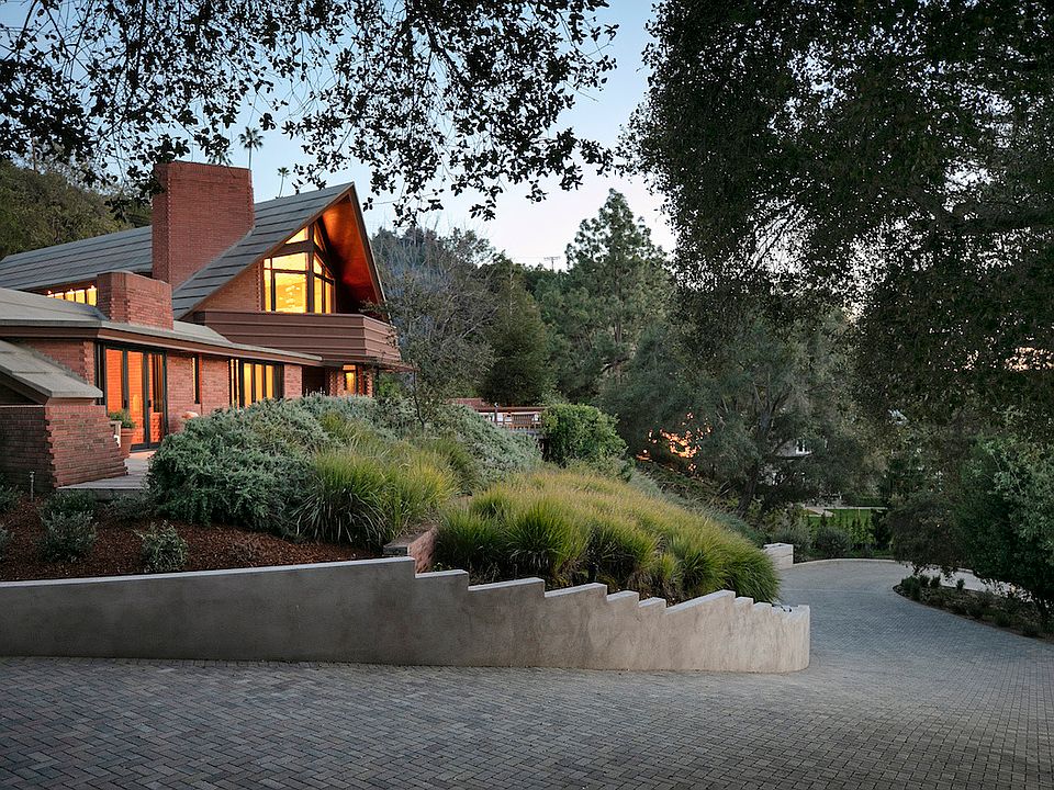 "Newman Residence, 1948." Designed by legendary architect Lloyd Wright. A masterpiece of organic mid-century modernism, renovated and lovingly restored by Diane Keaton. Situated on over 1.4 acres in Rustic Canyon, up a long private driveway and past a vast motor court, sits this unique and vintage gem. Angled public rooms are designed to integrate the outdoors. Exposed brick and concrete juxtapose to create a sense of warmth. Master suite upstairs is a retreat unto itself. 4 additional bedrooms on the lower level compliment this most special floor plan. Complete privacy and security. One of kind for a collector with exacting standards. Shown to pre-qualified buyers.