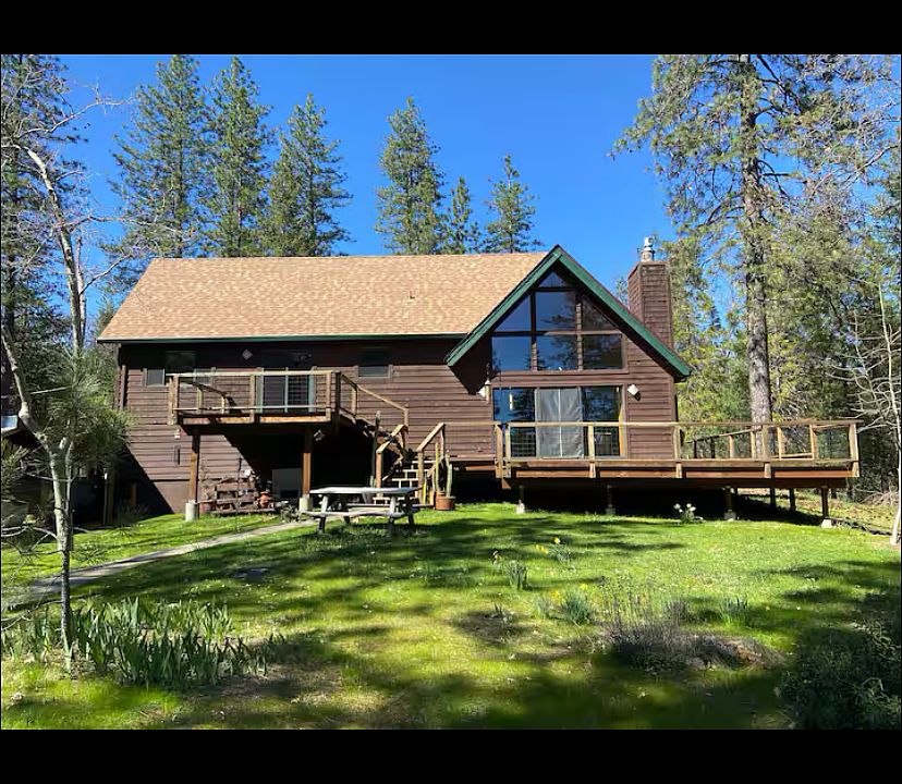 Nestled among beautiful Pines and Oaks, the fully furnished full private(no one else living there or on the property) cabin provides serenity and seclusion. Huge master bedroom with King bed and updated bath/soaking tub, and two bed loft and full kitchen, dining and living room. Also a beautiful Deck spanning most of the house. Just 15 minutes away from Grass valley or Nevada City where civilization is close. And one hour away from Donner pass and Tahoe.