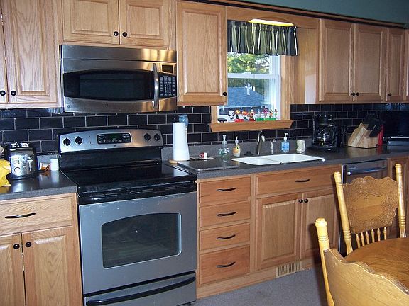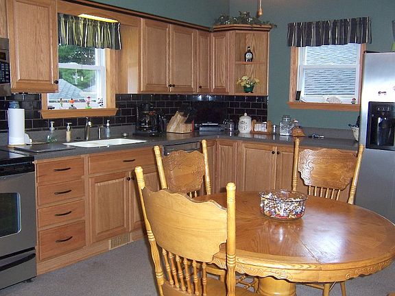 Over 1,600 sq ft within this 4-5 bedroom, 2 full bath home! Very nice Thomasville oak cabinets & corian countertops offered ...eat-in kitchen... totally renovated 4-5 yrs ago. All major appliances remain plus washer/dryer. Major mechanicals updated ....kitchen, baths, roof, siding, most windows, furnace/central air, electric, plumb'g. Upstairs may need some updating. All spacious rooms. 2 bedrooms on main floor... one presently used as office. Full basement...2.5 car garage.
