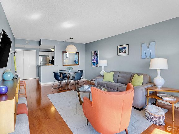 Airbnb Beauty fully furnished, unobstructed Elliot Bay water view from your large private deck overlooking entrance to iconic Pike Place Market & The Great Wheel. Designed & furnished as a vacation rental with almost all furnishings included. If you're looking for an investment property, this is the one! Watch the ferries come and go. You can continue to rent it (4.96 Airbnb rating)or move right in & live happily ever after. 2 mini-splits for air conditioning & heat. Building has fitness room, pool/spa, business center & 24/7 Concierge.1 pkg space in controlled access garage,1 storage. Blocks to light rail, Benaroya Hall, Seattle Art Museum, Pike Place Market, ferry terminal & newly designed Seattle waterfront & aquarium. Call w/questions!