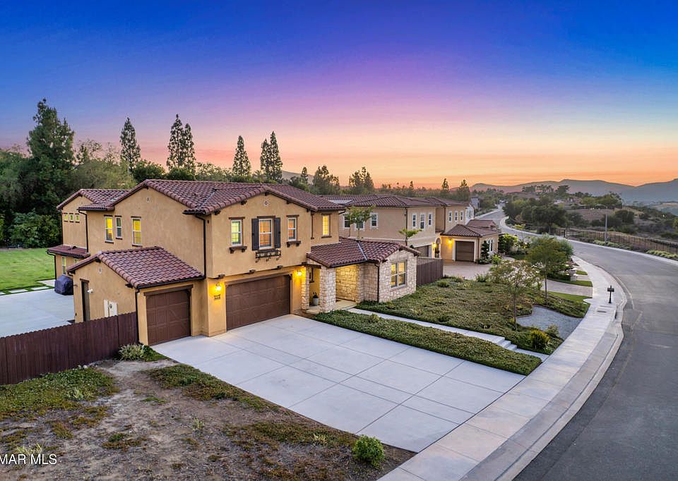 Welcome to your dream home, a stunning blend of luxury, comfort, and functionality, located in a premier gated community with breathtaking canyon and hillside views. Built in 2017 and situated on one of the largest lots in the neighborhood, this 5-bedroom, 4.5-bath masterpiece offers 4,470 sq ft of thoughtfully designed living space with no neighbors behind or across the street, ensuring rare privacy and serenity.Step inside to soaring 9+ foot ceilings, rich hardwood floors with elegant herringbone entry detail, and an open floor plan that seamlessly connects the expansive living room, formal living area, and gourmet kitchen. The chef's kitchen is a showstopper, featuring top-of-the-line Thermador appliances, including a bread warmer, a massive island, abundant cabinet storage, and oversized sliding doors that invite the outdoors in. Entertain effortlessly with the indoor-outdoor flow to a large covered patio complete with a fireplace and TV.Upstairs, greeted with a secondary living room dividing the primary suite and additional bedrooms. The sprawling primary suite is your private retreat, boasting dual walk-in closets, double vanities, and a covered balcony with a fireplace and TV. Two dedicated laundry rooms, one on each floor, add unmatched convenience, while the first-floor guest suite and mudroom offer smart, flexible living.The entertainer's backyard is designed for unforgettable gatherings, with generous side yards, a turf play area, and ample space to relax or play. Additional highlights include fully owner solar, a 3-car garage, long driveway for extra parking, dual-zone A/C, tankless water heater, and access to inviting community pools and nearby parks.Perfectly located near the 101 and 23 freeways for easy commuting, this home offers both luxury and lifestyle. Don't miss your chance to own this rare gem!