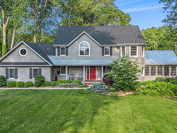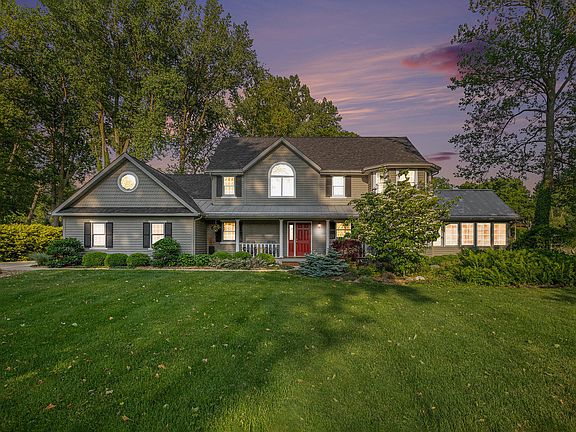 A rare 282-ft private waterfront retreat on the St. Joe River with direct dock access—just minutes from Lake Michigan. Positioned to capture water views from every room, this 5BR, 3.5BA home offers a light-filled, open floor plan with soaring ceilings, expansive windows, and a stunning living room fireplace. The eat-in kitchen is adjacent to the sunroom leading to huge deck! The private primary suite features river views, its own walk-in closet, jetted tub, walk-in shower, and custom finishes. Entertain from the sunroom off the spacious kitchen, unwind on the riverside deck, or explore the lush, landscaped grounds with mature trees. Includes a 3-car garage, first-floor laundry, bonus room, and whole-house generator. A truly one-of-a-kind setting in a highly sought-after location!