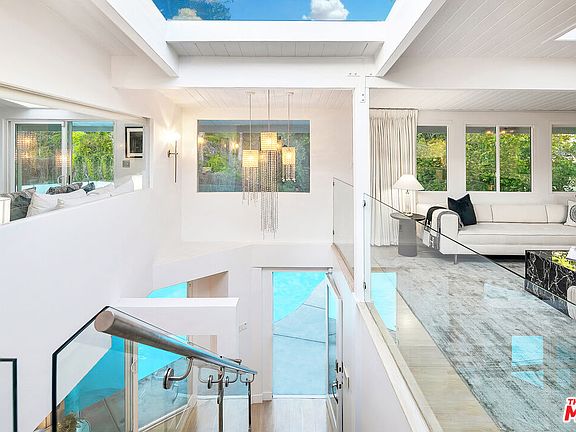 A very special "one of a kind" Mid-Century Oasis, and former home to several A-List celebrities. Nestled in a small cul de sac just 2.5 minutes behind The Beverly Hills Hotel, close to Sunset Blvd. This home has an incredible "vibe" , featuring an open floor-plan with excellent indoor/ outdoor flow and tons of natural light, 9 sky-lights, plus 3 oversized fireplaces. Large sumptuous Primary Suite w/ luxuriously appointed bath, plus 2nd bedroom both feature walls of glass which open out to a dramatic 50 ft. Waterfall, pond, lush yard & Fire Pit, with trails leading to hilltop Yoga area. Updated newer Kitchen w/ porcelain counters, custom cabinetry, & top of the line MIELE appliances. Spacious, light-filled living & dining area set atop the trees. Downstairs features a private 3rd bedroom w/ separate gated entrance, perfect for guests, teenager, office or live-in. Media Den with Bar and fantastic sunken "conversation pit", around a fireplace, perfect for movie nights or friendship circles. Heated pool with new equipment glows from every room at night. Private and Tranquil with only 2 homes on street and ample parking rarely found in the hills. Private, walled and gated entry, ready to move in! This gem is an incomparable property and rare offering.