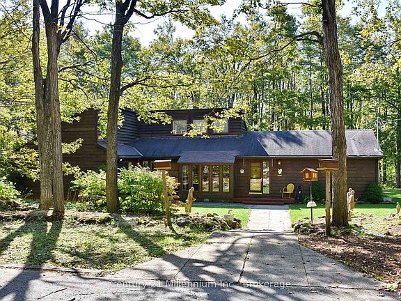 In The Woods... Discover the perfect balance of nature, privacy, and creativity at this unique 3-bedroom, 2-bathroom home tucked into the Niagara Escarpment just west of Devils Glen Ski Club. Set on 5.724 acres of wooded beauty, this property offers endless opportunities for relaxation and inspiration. Inside, you'll find a comfortable home filled with character, plus a bright artists studio complete with a clean-up sink ideal for painters, makers, or hobbyists. With a private entrance, studio would also make ideal office. Beside the house a 10 x 30 workshop provides additional space for projects, storage, or a home-based business. Surrounded by forest, the setting is peaceful and private, with the Escarpment as your backdrop. Whether you're an artist seeking inspiration, a nature lover craving space to roam, or someone dreaming of a secluded country retreat, In The Woods offers it all.