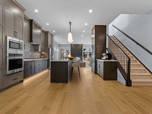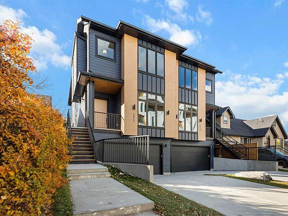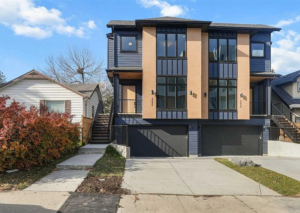 Experience refined living in this stunning 3-bedroom, 4-bathroom semi-detached residence, offering over 2,900 sq. ft. of thoughtfully designed space across three levels. With immediate possession, this home combines architectural sophistication, modern innovation, and exceptional craftsmanship in one of Calgary’s most desirable inner-city communities. The main floor welcomes you with 10-foot ceilings, rich hardwood flooring, and abundant natural light streaming through energy efficient windows. A bright main-floor den with large picture windows provides the perfect setting for a home office or reading retreat, elegant, spacious, and filled with light. Throughout the home, every element has been curated to achieve a seamless blend of luxury and function. QUARTZ countertops, shaker-style cabinetry with under-cabinet lighting, soft-close drawers/cupboards, and black and gold Tenzo fixtures elevate every space. The gourmet kitchen serves as the centerpiece, featuring a fireclay farmhouse sink, built-in spice racks, and a large island with concealed electrical outlets. A discreet dumbwaiter elevator connects the garage and lower level directly to the kitchen, adding effortless practicality to everyday living. The powder room is a bold design statement, complete with designer wallpaper, a gold leaf ceiling, floating vanity, and backlit mirror — a perfect reflection of modern sophistication. The primary suite offers a private retreat with a freestanding soaking tub, dual sinks, floating vanities with in-shelf lighting, oval mirrors, and a separate custom-tiled shower. Each additional bathroom continues this standard of excellence with custom tilework, floating vanities, and luxury fixtures throughout. A custom bar area on the lower level with black and gold metal mesh detailing, floating shelving, and a built-in wine display creates an elegant space for entertaining or relaxing. Outside, a spacious patio and lush green space extend the living area, perfect for outdoor gatherings and quiet evenings alike. Situated just minutes from Downtown Calgary, steps from Shaganappi Golf Course, and blocks from the vibrant 17th Avenue SW corridor, this residence offers the perfect blend of urban energy and timeless comfort. Within walking distance to the LRT, top-rated schools, and shopping, it defines elevated inner-city living. A home of rare distinction , where craftsmanship, light, and modern luxury converge.