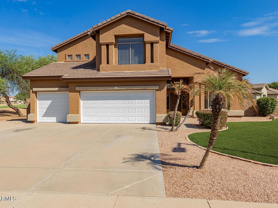 NEW ROOF & HVAC, GOLF COURSE LOT! This Western Skies golf community home sits on the largest lot in the neighborhood & backs to the golf course! Huge side yard w/ RV gate & concrete pad big enough for a basketball or pickleball court. Relax & watch the golfers from your newly resurfaced pool & hot tub (new pool pump, new filter & new vacuum) or enjoy the evening around the golf side fire pit. This house has just been painted & has a new water heater & features lots of light & plenty of room w/ 4 bedrooms, 3 full bathrooms, formal living room, dining room, family room, flex room & kitchen w/ granite, SS appliances, pantry & eating area. All bedrooms are oversized and the owner's suite has a sitting area, 2 walk-in closets, soaking tub & separate tiled shower. There is lots of built-in storage & a laundry shoot for convenience. The oversized 3 car garage has lots of room for cars, toys & hobbies. Come see this amazing house on the golf course today! Mortgage savings may be available for buyers of this listing.