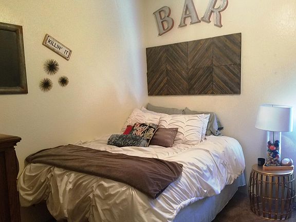 The living room/kitchen area is large and great for socializing with a back door off the kitchen to the fully fenced back yard. All appliances included. Washer/ Dryer. Central AC/Heat. Off street parking for 5 vehicles.