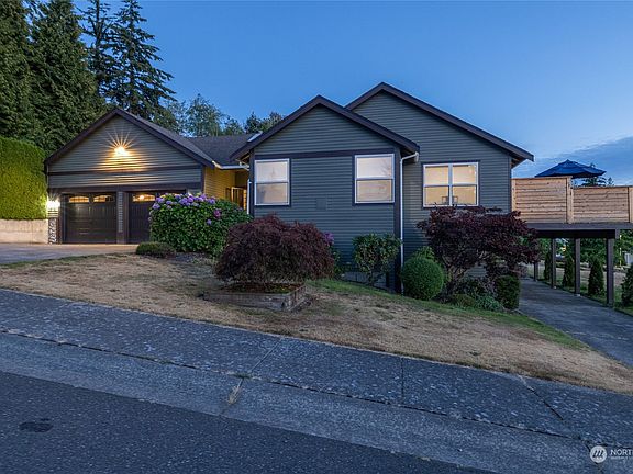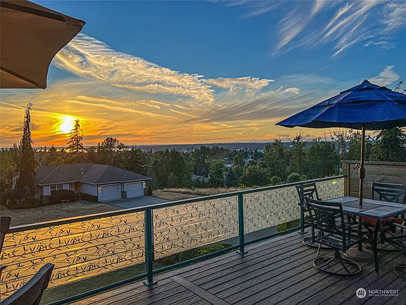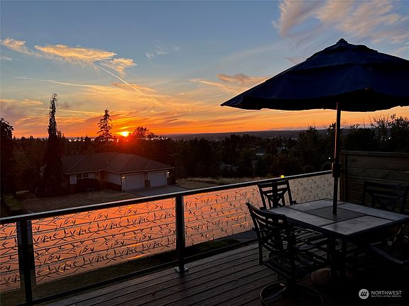 Walk to Whole Foods and Fred Meyers from this Puget neighborhood home on a dead-end street. Take in breathtaking sunsets from your kitchen, living room, main floor primary suite or large composite deck. The home features vaulted ceilings and ample storage as well as luxury extras like air conditioning, central vacuum, a heated shop, new manufactured hardwood flooring upstairs, new solid wood doors, new ductless system, new paint inside and out, a newer refrigerator, newer roof and a hot tub with a Cavana cover/roof detail. This home is beautifully updated and move-in ready.