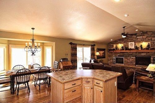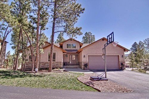 Listing agent: Connie Sims, Call 719-339-6795 for information. Fabulous custom main level living with 4 bedrooms, 3 baths & 2 car garage located just steps away from hiking & biking surrounded by soaring pines. Original owner & pride of ownership is evident throughout. Main level offers Master suite with gas log fireplace, 5 piece bath & jetted tub, laundry, great room has a stone accent wall with gas log fireplace, dining area, spacious kitchen & 2 bedrooms with bath. Lower level is comfortable & stylish with sizeable family/game room, office, bedroom with attached bath.