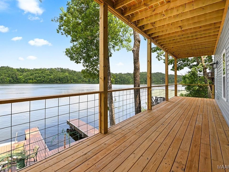 Newly constructed custom-built home on Lake Jordan featuring 3 bedrooms and 2.5 bathrooms. This showcases an open-concept kitchen and den with vaulted tongue-and-groove ceilings. The kitchen is equipped with custom-made countertops and stainless steel appliances. The master suite, located off the kitchen, also boasts tongue-and-groove ceilings, along with a spacious bathroom and an oversized walk-in tiled shower. The downstairs area offers 9.5-foot ceilings and two additional bedrooms, perfect for children or guests. Outside, the choice of two decks, a large pier, and a built-in wet slip. Contact us now to schedule your private showing.