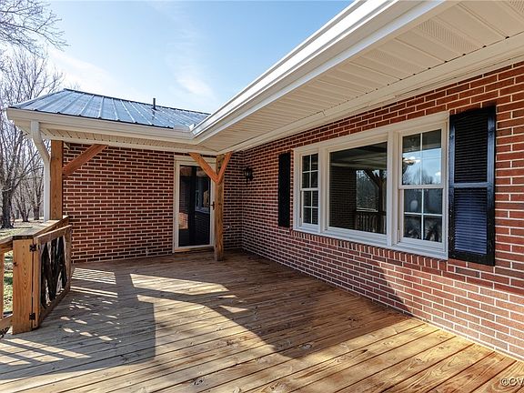 Welcome to this spacious and versatile property located at 1415 Harpers Bridge Road, set on an expansive 20 acres of serene land abounding with wildlife. This brick residence features a metal roof, ensuring durability and low maintenance while enhancing the overall aesthetic appeal. The thoughtfully designed layout offers a full basement, providing ample storage and flexibility for various uses. In addition to the main residence, there's a 40' by 30' galvanized metal shop with an extended concrete pad suitable for heavy equipment, a 24' by 32' mostly concrete barn with electricity and water, a loft, and horse stalls. A 24' by 24' shed serves as additional storage, while a chicken house and greenhouse offer opportunities for sustainable living. An additional cabin by the creek with water enriches the landscape, offering a peaceful retreat or potential guest house. Highlights inside include thermal windows that enhance energy efficiency and a geothermal heating and cooling system, promoting sustainability and comfort year-round. The living space boasts exposed beams and hardwood floors adding character and warmth to the ambiance. The ceramic tile flooring and tile backsplash in the kitchen offer a combination of style and practicality, ensuring a modern and welcoming cooking environment. Additionally, the wood-burning fireplace and a Stanley wood-burning stove provide cozy warmth during colder months, further enhancing the home’s charm. The built-in cabinet and bookcases provide ingenious storage solutions while contributing to the functional layout. With its combination of open fields, forested areas, mature fruit and nut trees, 2 live springs, Hickory Run Creek, and many structural features, this property embraces a blend of rustic charm and modern living, perfect for those seeking space, tranquility, and versatility. Whether you’re looking for a hobby farm with tranquil outdoor spaces, or want a retreat away from the hustle and bustle, this property checks all of the boxes.
