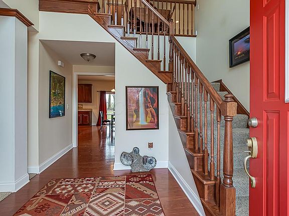 Gorgeous 2,718 Sq. Ft. home w/3 car garage, wooded lot that backs up to a farm field and located on a quiet street close to lake entrance for quick access to SR56 & I70. From the moment you enter you will be drawn to the lovely staircase & open 2 story ceiling & window above the entry door. Entry Level: Lg Master Suite w/Private Bath & Walk-in Closet. Laundry, Dining/Option Rm, Family Rm, Lg Kitchen w/granite topped eat-in Island & loads of cabinets. Eat-in area continues on into the Great Room w/2-Story Ceiling & Windows. Don't forget to Look up to the UL Loft. UL: 3 Bdrms, Full Bath and an loft area for quiet office/OptionArea.Lg Unfinished Basement. Exterior: Large paver patio for entertaining your family/friends. New Front Steps and Railing. Flowering Trees and Perennials.