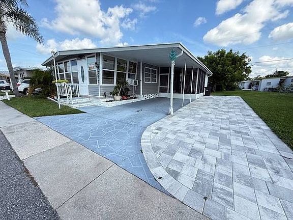 Situated on Florida's West Coast, in the heart of the popular Suncoast, is where you'll find Lake Haven. Residents of this Dunedin, Florida community enjoy the benefits of being within 5 miles of metropolitan Clearwater and the #1 Beach in the US (Clearwater Beach), and appreciate their close proximity to tranquil beaches, area shopping, medical facilities and transportation services. Lake Haven is pet-friendly and offers amenities including on-site fishing, horseshoe pits, picnic area, shuffleboard courts, a community swimming pool and spacious clubhouse for social gatherings. Travel + Leisure Magazine just named Dunedin, Florida as the "Most Livable" place to retire in the United States! This 1967 home features 2 bedrooms and 1 bathroom. It is being sold PARTIALLY FURNISHED so be sure to ask your agent about what stays with the home. The living room spans across the front of the home and has laminate flooring, lots of windows and is light and bright. There is an additional air conditioning unit and front door entry. There is also A LAKE VIEW! The kitchen has upgraded cabinets and counters, nice white appliances and laminate flooring. There is a shiplap detail wall and an ice maker included. The dining room is a very large room with a nice farm style table with chairs and a nice light. There are lamiante floors and neutral walls. The master bedroom is a large room with a huge walk-in closet with barn doors and shiplap. The master bath has a tub/shower combo, upgraded vanity, laminate flooring and shiplap detailed wall. The second bedroom is a great size! Perfect for hosting family and friends from out-of-town. There are neutral walls and flooring. It is a great guest space. The lanai is a perfect place to enjoy the beautiful Florida weather. There is tile flooring, and it opens to the shed. There is also a huge pavered parking area that was completed in August of 2024 and is perfect for a golf cart or entertaining. All listing information is deemed reliable but not guaranteed and should be independently verified through personal inspection by appropriate professionals. All Florida Mobile Home Sales Inc. cannot guarantee or warrant the accuracy of this information or condition of this property. The buyer assumes full responsibility for obtaining all current rates of lot rent, fees, and pass-on costs. Additionally, the buyer is responsible for obtaining all rules, regulations, pet policies, etc., associated with the community, park, or home from the community/park manager. All Florida Mobile Home Sales Inc is not responsible for quoting of said fees or policies. LOT RENT: $1270 and includes water, sewer, lawn and trash and taxes.