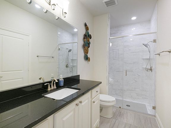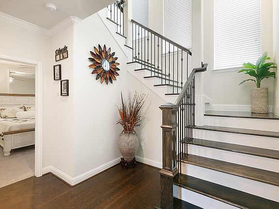Experience elevated living in this former Village Builder Model Home with Rooftop Terrace and serene water views. This three-story, 3-bedroom, 3.5-bath residence features an elegant brick and stone facade and interiors designed for comfort and style. Upon entry, expansive windows bathe the home with natural light, highlighting the open layout, hardwood floors, and refined finishes. The chef's kitchen boasts granite countertops, premium appliances, and custom cabinetry-perfect for culinary pursuits. Spa-like primary suite offers dual showers, a soaking tub, and a spacious walk-in closet. Entertain or unwind on the rooftop terrace overlooking tranquil waters. Located in a secure, gated community zoned to top SBISD schools, the home provides exceptional access to the Energy Corridor, City Centre, and major thoroughfares.