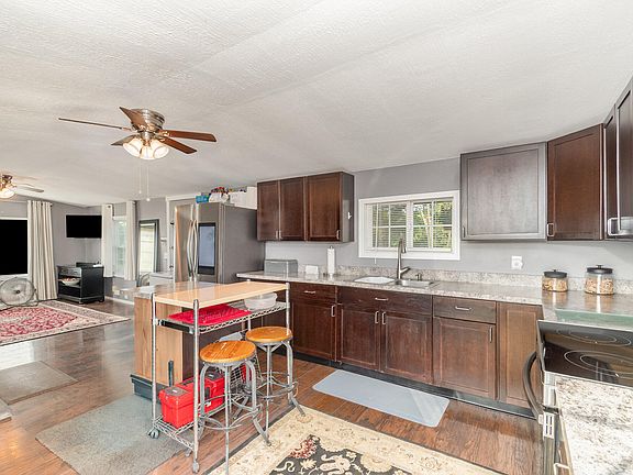 - Features: Eat-in Kitchen, Fireplace(s), Kitchen Island, Laminate Flooring, Solid Surface Counters