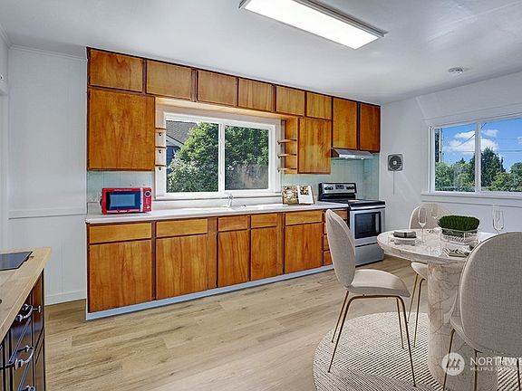 Take in views of Lake Washington as you walk down the street from your well-maintained Lower Kennydale home. The functional layout puts two bedrooms and a full bath on the main level, along with a generous eat-in kitchen & spacious living room. Downstairs is on track to become an ADU with private entrance, plumbing for a potential kitchen, two beds & a quarter bath. Newer vinyl windows, new flooring & paint throughout the main level. Fully fenced backyard with garden space and fruit trees. Two-car garage and RV/boat parking. Close to I-405, Eastside, Seattle, Gene Coulon Park, Boeing, Renton Landing, Shopping & more. Welcome home.