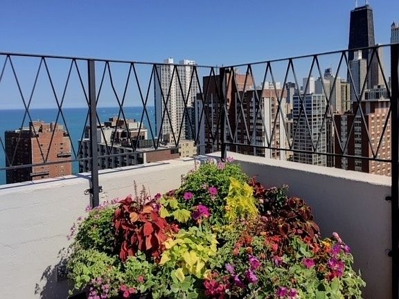 Step into luxury living in this stunning East facing condo with breathtaking views of Lake Michigan. As you enter, you'll be greeted by warm sunlight streaming in through the large windows, highlighting the beautiful Cherrywood hardwood floors and elegant chair rail details.  The open floor plan is perfect for entertaining, with a warm cherry kitchen cabinets featuring stainless steel appliances and a convenient pass through to the dining/living area. The spacious primary ensuite boasts a huge walk-in closet with professional organization, providing ample storage space.  With 2 large bedrooms and 2 bathrooms, this condo is ideal for roommates or a home office setup. SIGNIFICANT IMPROVEMENTS INCLUDE ENVIRONMENTALLY FRIENDLY HYDRONIC FAN COIL SYSTEM  ensures quiet and efficient heating and cooling, making this a comfortable and energy-efficient home and REMOVAL OF POPCORN CEILING. Located in a boutique building in the heart of the Gold Coast, you'll be just steps away from the best of Chicago living. Enjoy easy access to 3 Arts Club, Old Town, Lincoln Park, and the vibrant dining and shopping of Rush Street. And don't forget to take in the stunning city and lake views from the rooftop pool, complete with BBQ grills for outdoor entertaining.  With door staff, an on-site engineer, and a prime location, this condo offers the perfect blend of luxury and convenience. Laundry is on 28th floor.  Sorry no dogs. This is a no smoking building.  Don't miss your chance to call this place home - schedule a showing today before it's gone!