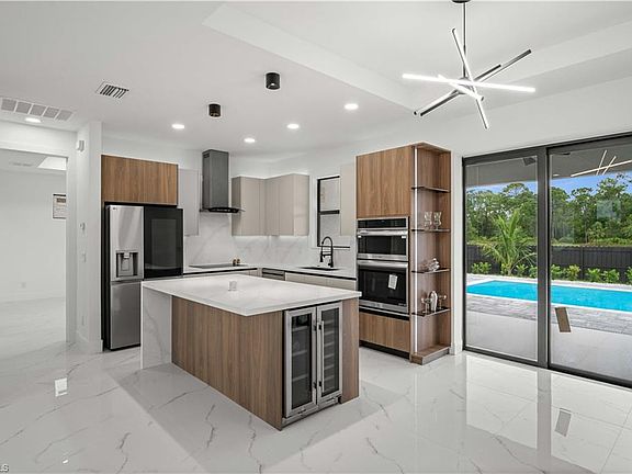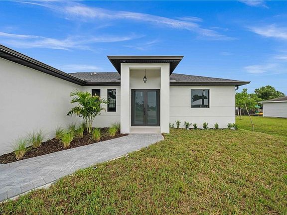 Welcome to the "Moonstone" Model. This amazing home is the perfect blend of value, comfort, luxury, style, and security. This beautiful new construction is built for everyone who wants to live with all the comforts of 'home.’ Impact windows and doors, European style kitchen featuring soft closing cabinet doors, drawers and Bloom hardware, high-end appliances, double oven, hood, cooktop, wine cooler, and much more. Master bedroom with custom designed built in walk-in closet, master en-suite with glass shower enclosure, double vanity, and linen closet. Two spacious bedrooms with walk-in closets, guest bathroom with glass shower enclosure. Home offers open concept layout with 10-foot-high interior ceilings, 8-foot-high designer doors. Outdoor kitchen with marble countertops and 1/2 bath by the pool, ready for enjoyment 12' x 24' beautiful pool with Sun Ledge, 2 car garage, washer, dryer, and laundry sink. "NO FLOOD INSURANCE NEEDED". Engulf in the multitude of upscale details that you must see to appreciate. Enjoy your day by the pool or explore everything Cape Coral has to offer. Do not miss out on this one-of-a-kind opportunity! Schedule your showing today and make this beauty your home!