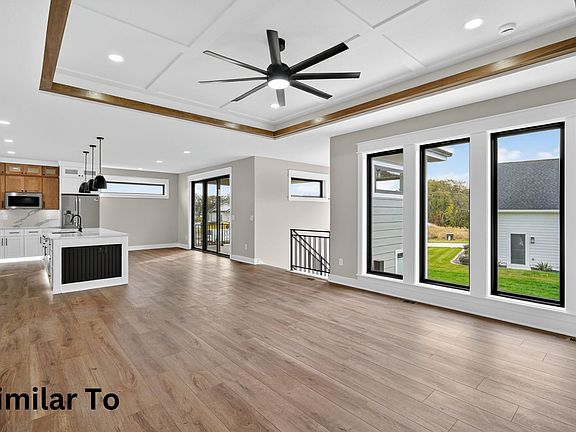 Stunning new construction by Minako Homes in Waukee's highly sought-after Stratford Crossing! This spacious ranch offers 6 bedrooms (including 2 master suites), 4 baths, and over 3,600 sq ft of beautifully finished living space. Enjoy 9' ceilings on both levels, LVP flooring throughout the main and most of the lower level, custom trim, and built-in closets, no wire racks! The gourmet kitchen features high-end appliances with gas/electric hookups. Basement includes a full bar, tons of storage, and a 2nd master suite. Thoughtful upgrades: zero-entry shower, full basement ceilings (no bulkheads), pre-wired for garage heater, car charger, and holiday lights. Sits on a half-acre lot backing to a serene pond, with covered composite deck, patio, and 3-car garage. Estimated completion December 2025. Waukee Schools. All information obtained from seller and public records.