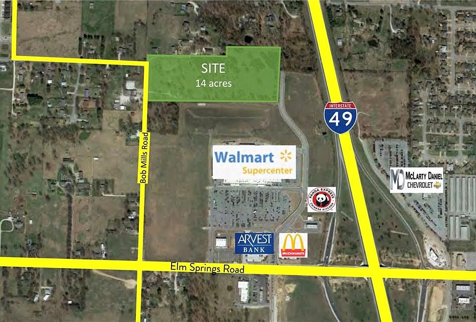 14 acres that are level to rolling. Currently zoned Agri. Springdale land use shows Commercial and Residential. Could be medium to high density multi-family. Backs up to new Walmart Super Center. Water and Sewer at the street. Value is in the land only. Home has no value North 48th Street is the east boundary, which has just been completed connecting the two sections of 48th Street together. It is two lanes with a middle turn lane, curbed and guttered with walking trail/sidewalk along the west side. Part of the west boundary is Oak Grove Road with part of the north boundary on Bob Mills Road. All of the frontages are paved.