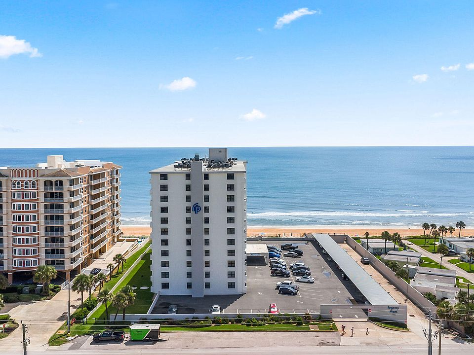 Wake up to breathtaking sunrises over the Atlantic from this direct oceanfront 1-bedroom, 1-bath condo in the highly sought-after Regency Plaza. Located on the 8th floor, this beachside retreat offers panoramic views and peaceful coastal living on a quiet, no-drive section of Ormond Beach. Inside, the unit features an open layout with a spacious living area, tile flooring in the main space, and carpet in the bedroom. The galley-style kitchen offers full-size appliances and ample cabinet storage, making it ideal for full-time living or a relaxing getaway. Regency Plaza is known for its resort-style amenities, including an oceanfront pool, two sun decks, a fitness center, game room, library, and a large club room with a full kitchen for social gatherings. The building offers secure access, laundry facilities on each floor, storage lockers, and on-site management for peace of mind.