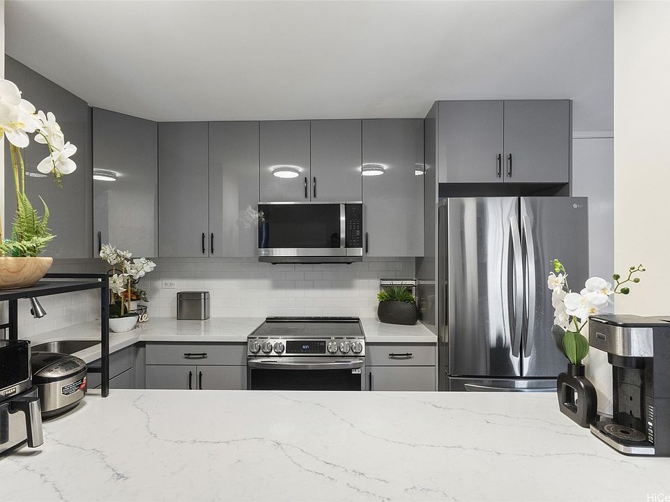 Great opportunity for first-time homebuyers or investors. Convenient location near Punahou School, the University of Hawai‘i, and easy freeway access. This move-in ready unit has been remodeled with a new kitchen, vinyl plank flooring, fresh interior paint, and the popcorn ceiling removed. Enjoy city views from the preferred mauka side of the building. The efficient layout includes two bedrooms, a lanai, and an in-unit washer and dryer. Comes with covered, gated parking for added security. Close to schools, the freeway, and the hospital—ideal for both owner-occupants and investors looking for a well-maintained home.