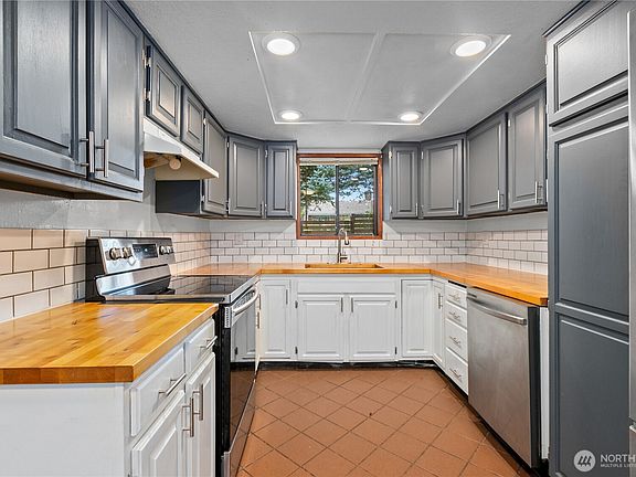Fantastic Lake Stevens home with 1,682 sq ft, 3 bedrooms, 1.5 bathrooms and a large lot with plenty of outdoor space. Updated kitchen with wood butcher block counters, open vaulted ceilings with tons of natural light and the bonus room upstairs that could serve as and additional bedroom or living space. The first floor primary bedroom and living room with cozy wood stove offers plenty of space on the main level. This home has been pre-inspected. Don't miss this opportunity for a great home with even more potential!
